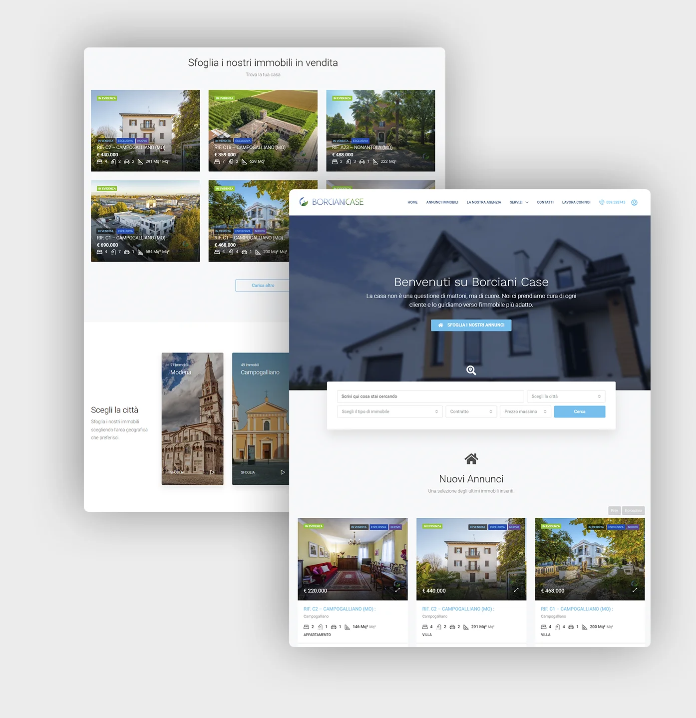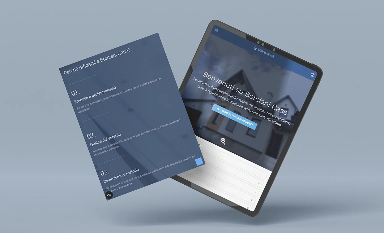 La collaborazione con Borcianicase ha avuto come obiettivo la creazione di una piattaforma digitale che andasse oltre la semplice vetrina di annunci. Per questa agenzia immobiliare, ho sviluppato un’identità visiva che comunica calore, professionalità e profonda conoscenza del mercato locale. Il design del sito web è stato progettato mettendo al centro l’utente, facilitando la navigazione tra le diverse tipologie di immobili grazie a un layout pulito che lascia ampio respiro alle immagini delle proprietà